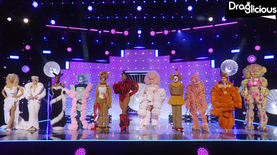 Primeiro bloco do décimo episódio da décima temporada de RuPaul’s Drag Race, sem legenda.